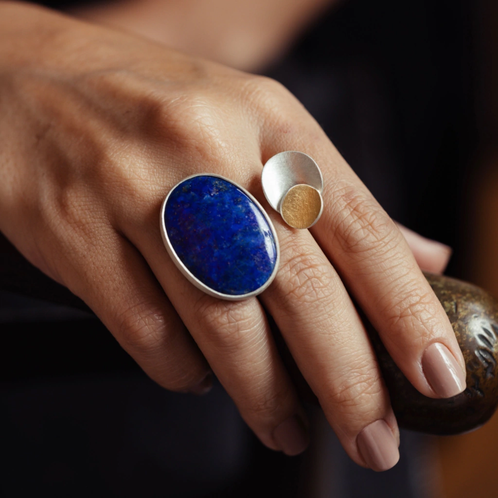 Material: Prata 950, prata 1000, ouro 1000 e lápis lazúli.