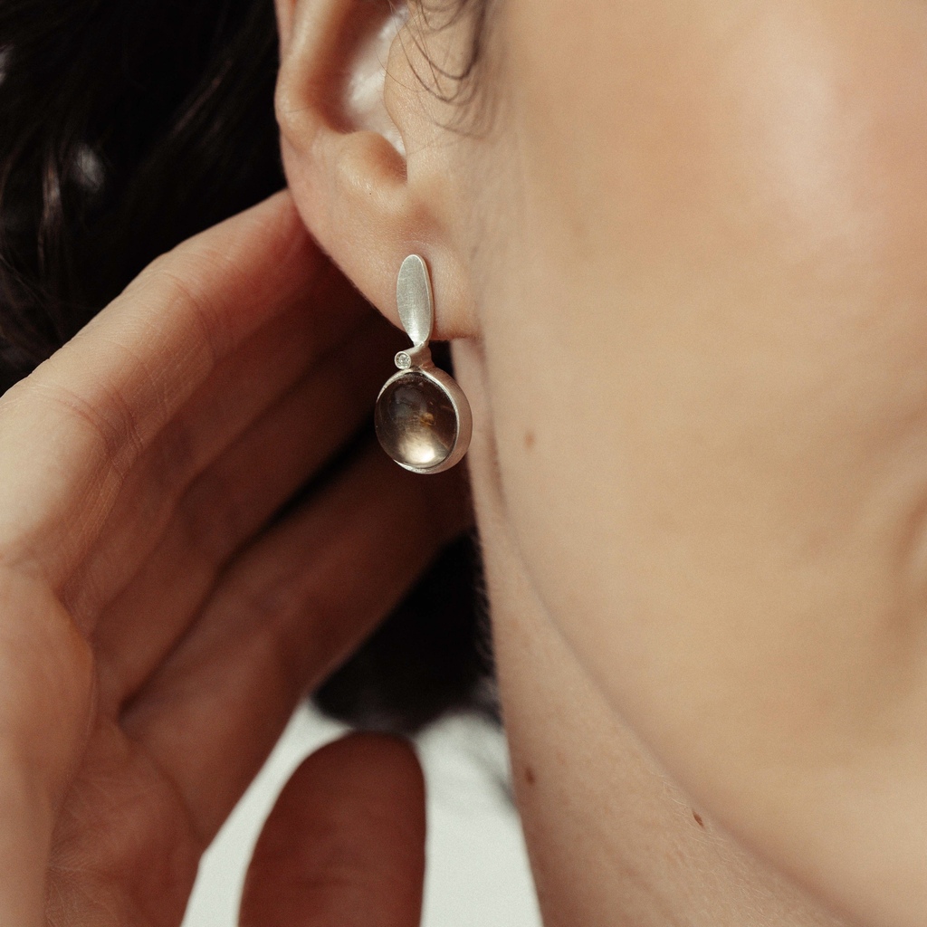 Material: Prata 950, quartzo fumê e diamante.