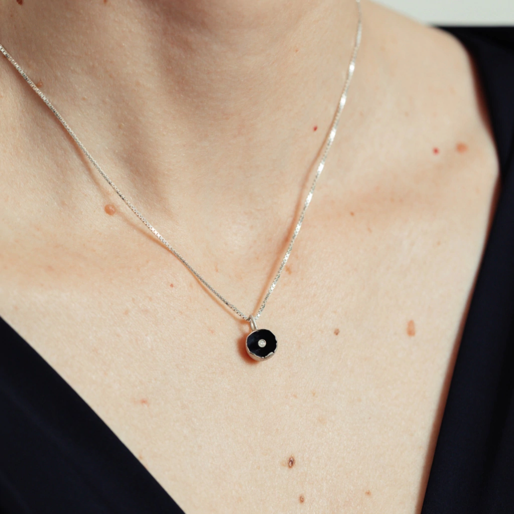 Material: Prata 950 e diamante.